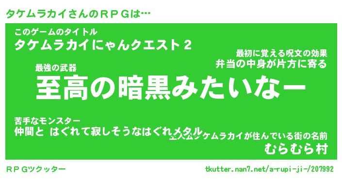 | 男性向けラノベタイトル風あだ名 | 『タケムラカイアートオンライン』 |