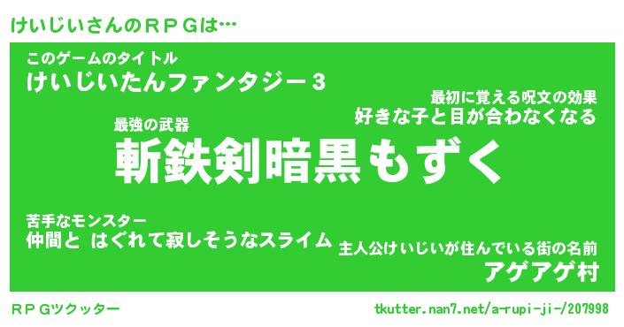 | 意味不明あだ名 | 『ペロリンけいじい』『永久保存けいじい』 |