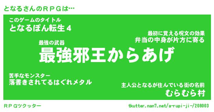 | 魔王2軒隣WW …「まくろ」 | 8月15日 09:47 |