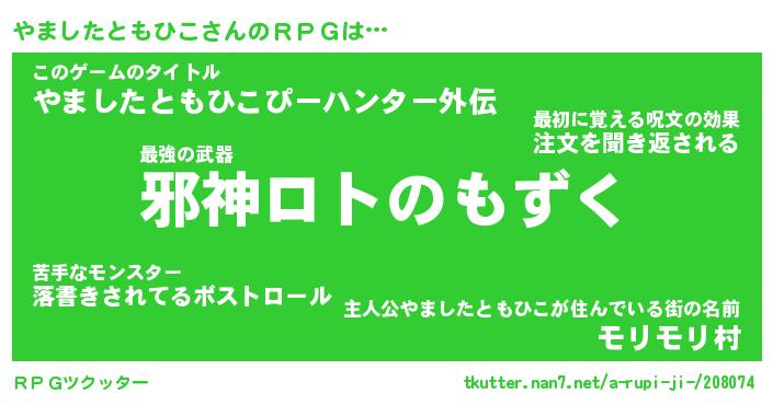 | 男性向けラノベタイトル風あだ名 | 『ヤマシタトモヒコアートオンライン』 |