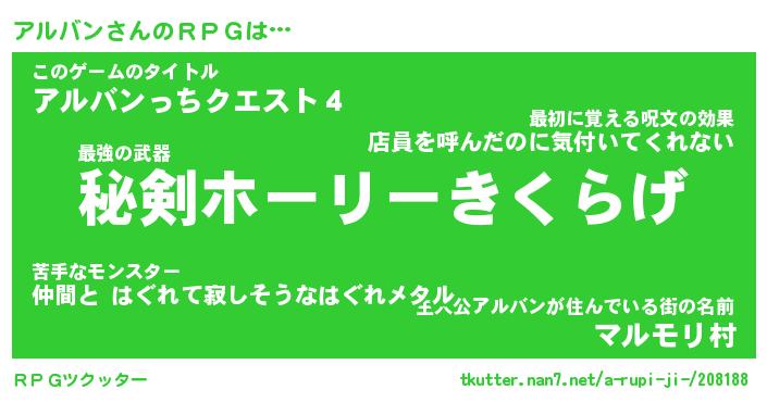 | 意味不明あだ名 | 『ペロリンアルバン』『永久保存アルバン』 |
