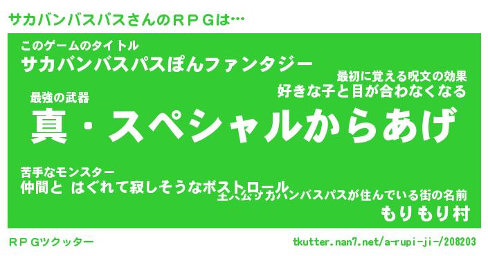 | 伝説のあだ名 | 『封印されし竜騎士サカバンバスパス』 |