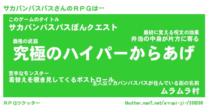 | 男性向けラノベタイトル風あだ名 | 『サカバンバスパスアートオンライン』 |