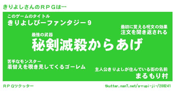 | ファンタジー風あだ名 | 『キリフェル』『エターナルキリヨシー』 |