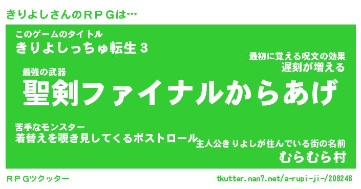 | ファンタジー風あだ名 | 『キリフェル』『エターナルキリヨシー』 |