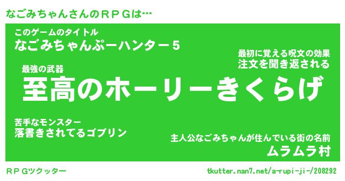 | ヒーロー風カッコイイあだ名 | 『スーパーナゴミチャン』『暗黒騎士ナゴ』 |