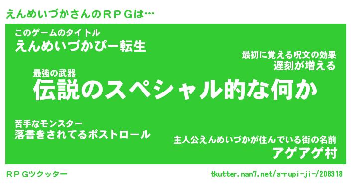 | 男性向けラノベタイトル風あだ名 | 『えんめいづかの憂鬱』 |