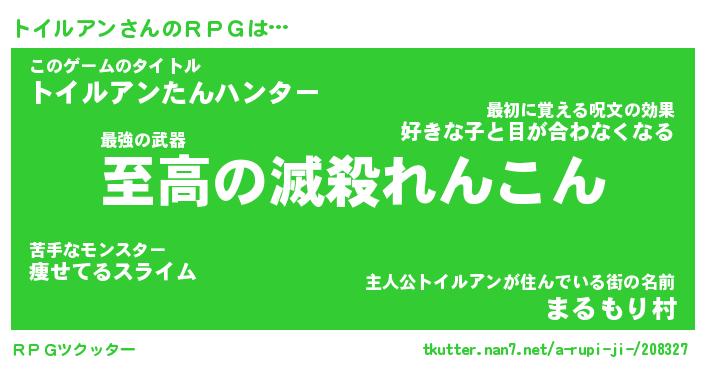 | 男性向けラノベタイトル風あだ名 | 『トイルアンアートオンライン』 |