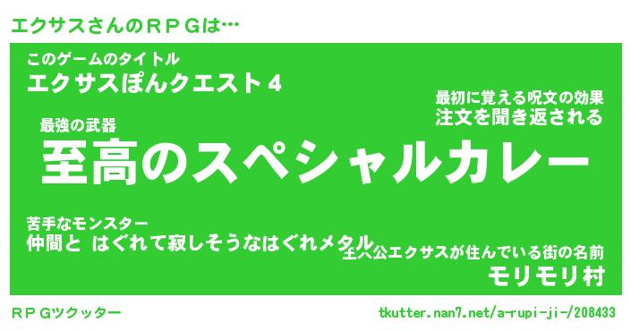| ヒーロー風カッコイイあだ名 | 『スーパーエクサス』『魔戒騎士エク』 |