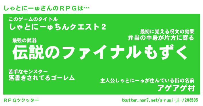 | 料理風あだ名 | 『節約★しゃとにーゅと油揚げの玉子丼』 |