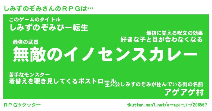 | 男性向けラノベタイトル風あだ名 | 『シミズノゾミアートオンライン』 |