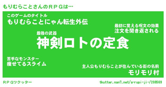| 伝説のあだ名 | 『不死鳥の竜騎士もりむらこと』 |
