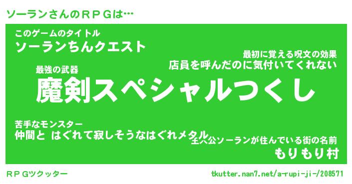 | 胡散臭い通販商品みたいなあだ名 | 『必ず成功するブレスレット…その名も「ソーラン」』 |