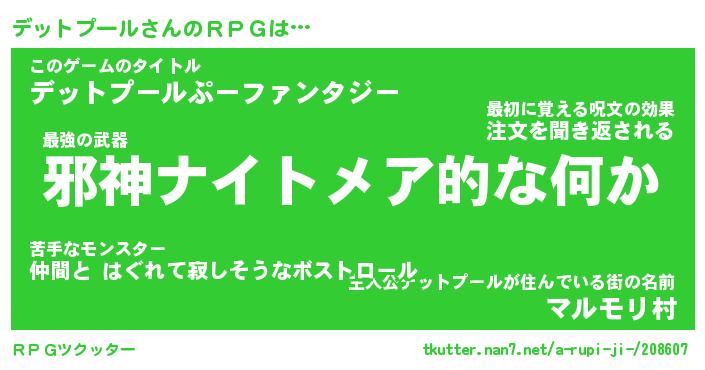 | 男性向けラノベタイトル風あだ名 | 『デットプールアートオンライン』 |