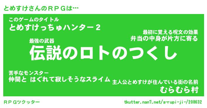 | 意味不明あだ名 | 『ペロリンとめすけ』『永久保存とめすけ』 |