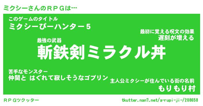 | ヘコむあだ名 | 『ミクにー』『酢こんぶ』『ミクお』 |