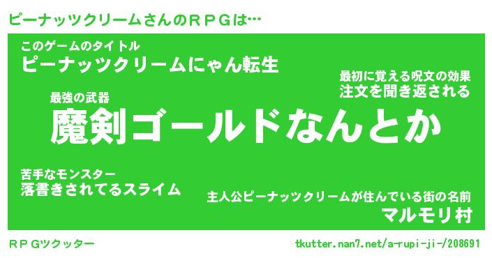 | 男性向けラノベタイトル風あだ名 | 『ピーナッツクリームの憂鬱』 |