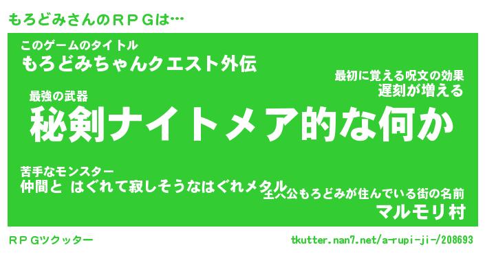 | 胡散臭い通販商品みたいなあだ名 | 『必ず成功する霊験あらたかなお札…その名も「もろどみ」』 |