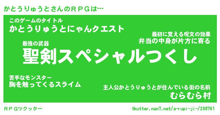 | 胡散臭い通販商品みたいなあだ名 | 『必ず成功するブレスレット…その名も「かとうりゅうと」』 |