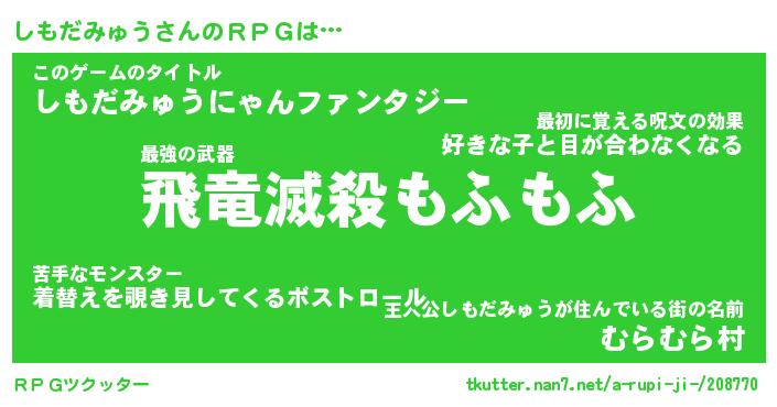 | ツイッター | しもだみゅうさんのツイッターID『fukuyoka_kun』 |