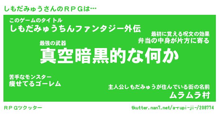 | 伝説のあだ名 | 『封印されし傭兵しもだみゅう』 |
