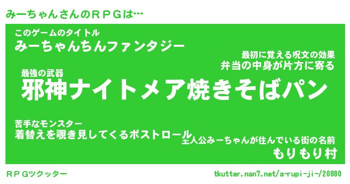 | ファンタジー風あだ名 | 『ミーフェル』『エターナルミーチャンー』 |