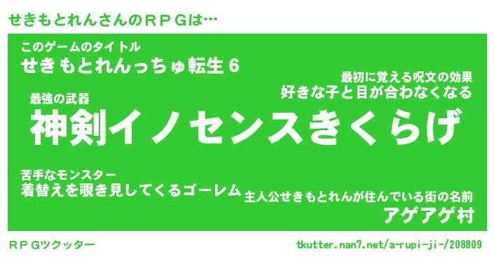 | 男性向けラノベタイトル風あだ名 | 『せきもとれんの憂鬱』 |