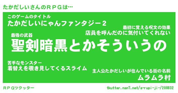| ファンタジー風あだ名 | 『タカフェル』『エターナルタカダシイー』 |