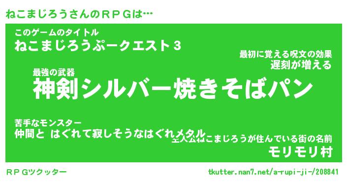 | 意味不明あだ名 | 『ペロリンねこまじろう』 |