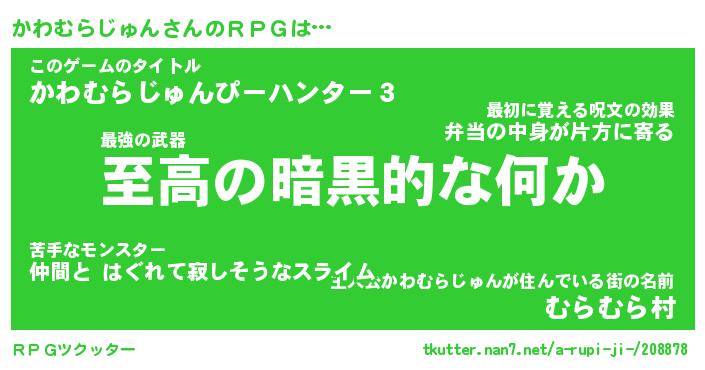 | 市区町村名 | 『南かわむらじゅん区』『かわ幌市』 |