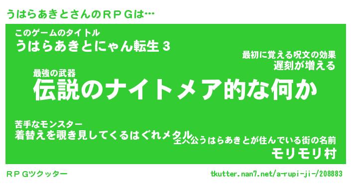| 男性向けラノベタイトル風あだ名 | 『うはらあきとの憂鬱』 |