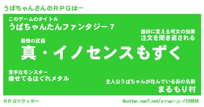 | ファンタジー風あだ名 | 『ウパフェル』『エターナルウパチャンー』 |