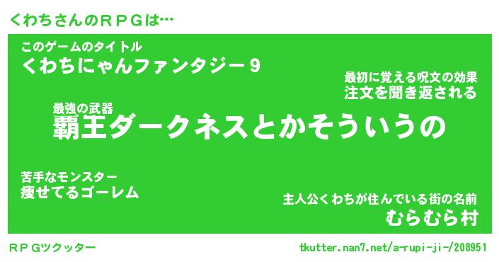 | ファンタジー風あだ名 | 『クワフェル』『エターナルクワチー』 |