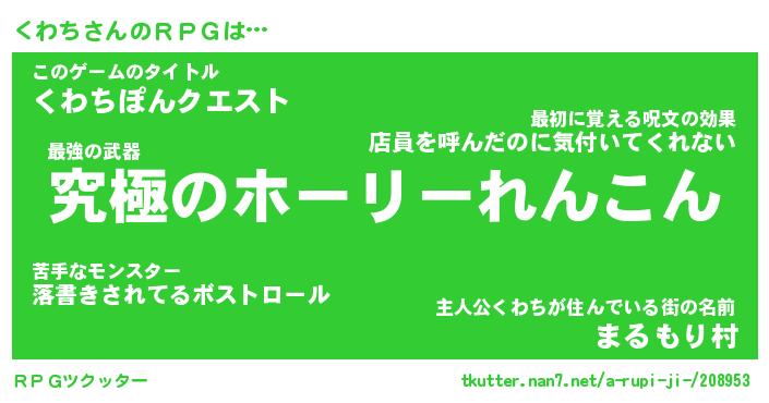 | 男性向けラノベタイトル風あだ名 | 『くわちの憂鬱』 |