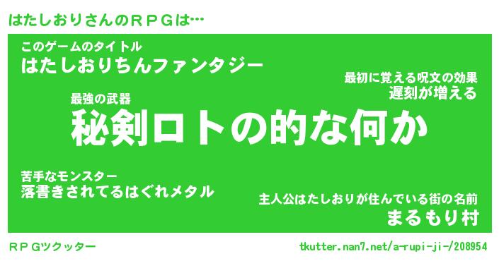 | ヒーロー風カッコイイあだ名 | 『スーパーハタシオリ』『天弓騎士ハタ』 |