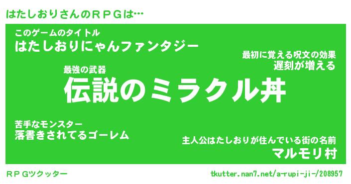 | 料理風あだ名 | 『節約★はたしおりと油揚げの玉子丼』 |