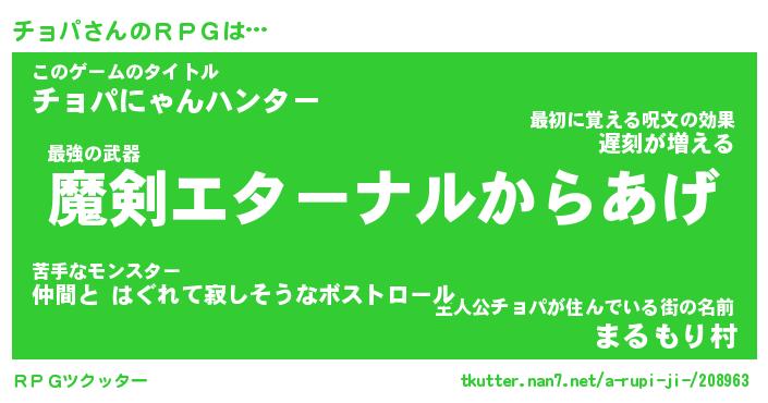 | 男性向けラノベタイトル風あだ名 | 『チョパの憂鬱』 |