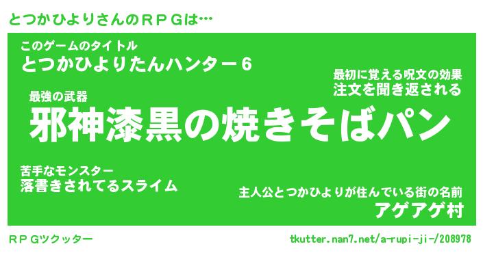 | 男性向けラノベタイトル風あだ名 | 『トツカヒヨリアートオンライン』 |