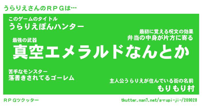 | 胡散臭い通販商品みたいなあだ名 | 『億万長者になれる霊験あらたかなお札…その名も「うらりえ」』 |