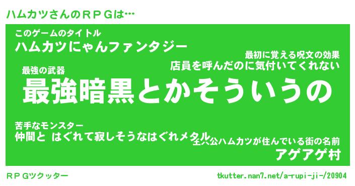 | 男性向けラノベタイトル風あだ名 | 『ハムカツアートオンライン』 |