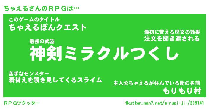 | ファンタジー風あだ名 | 『チャフェル』『エターナルチャエルー』 |