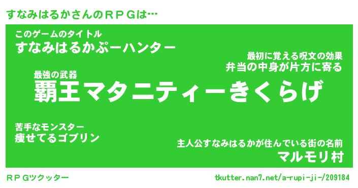| ヒーロー風カッコイイあだ名 | 『スーパースナミハルカ』『幻影騎士スナ』 |