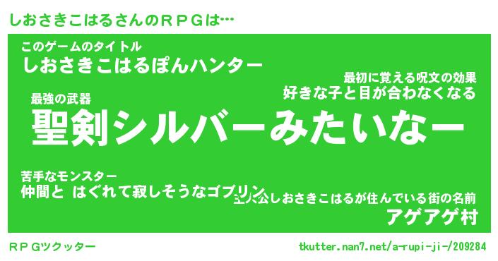 | 胡散臭い通販商品みたいなあだ名 | 『必ず成功する水晶球…その名も「しおさきこはる」』 |