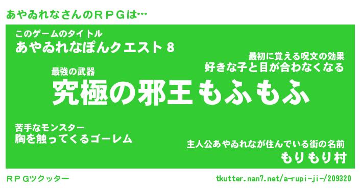| ファンタジー風あだ名 | 『アヤフェル』『エターナルアヤヰレナー』 |