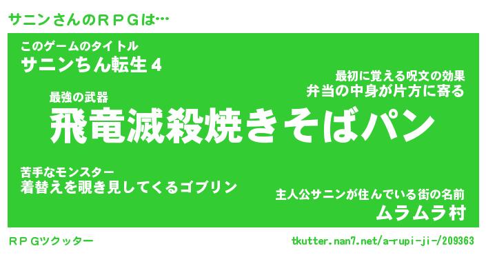 | 胡散臭い通販商品みたいなあだ名 | 『億万長者になれる霊験あらたかなお札…その名も「サニン」』 |