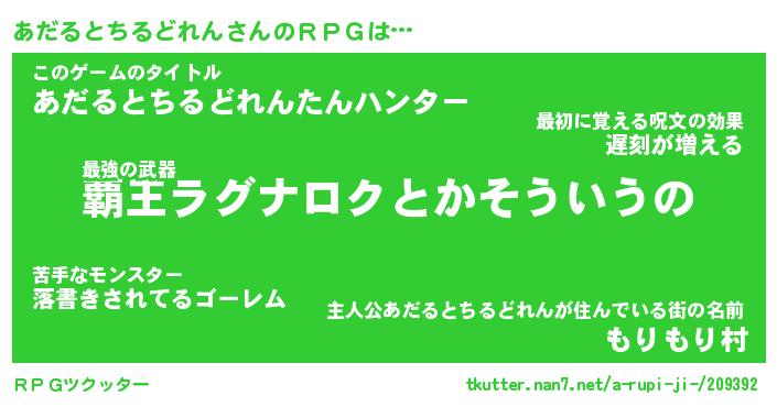 | 伝説のあだ名 | 『封印されし竜騎士あだるとちるどれん』 |