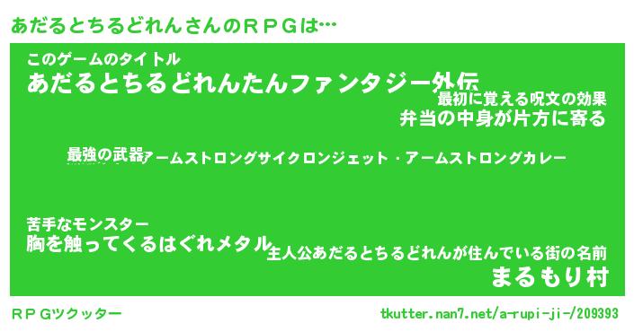 | 伝説のあだ名 | 『封印されし竜騎士あだるとちるどれん』 |