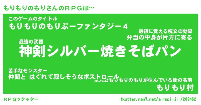 | 男性向けラノベタイトル風あだ名 | 『もりもりのもりの憂鬱』 |
