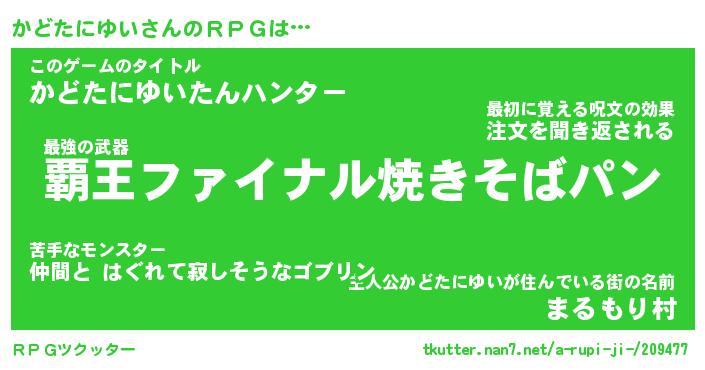| 伝説のあだ名 | 『封印されし傭兵かどたにゆい』 |