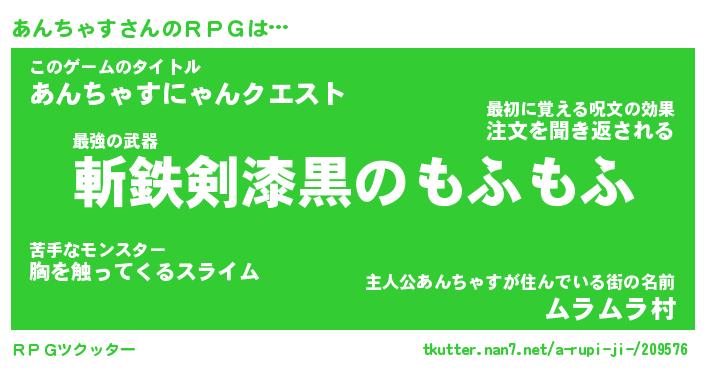 | 男性向けラノベタイトル風あだ名 | 『あんちゃすの憂鬱』 |